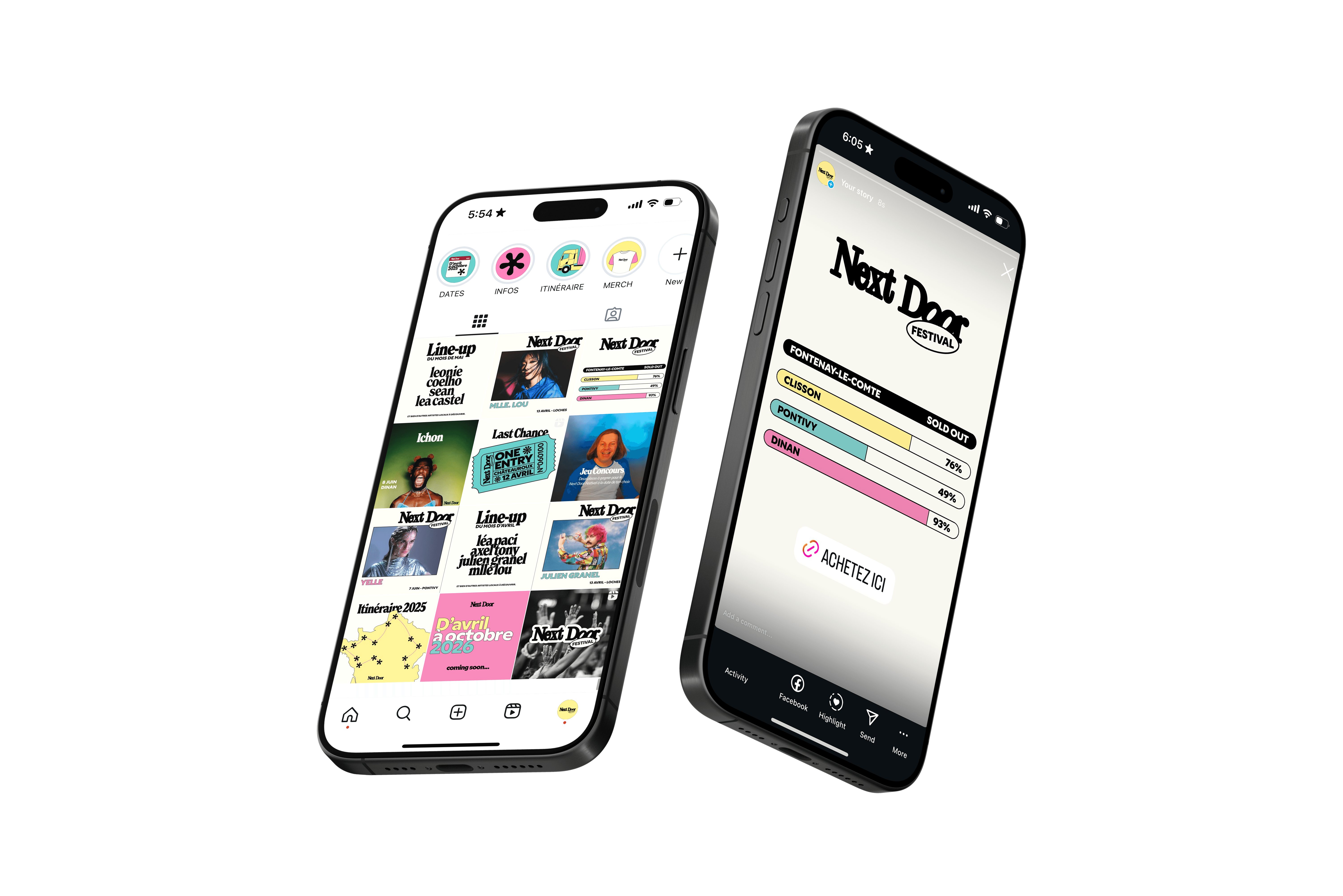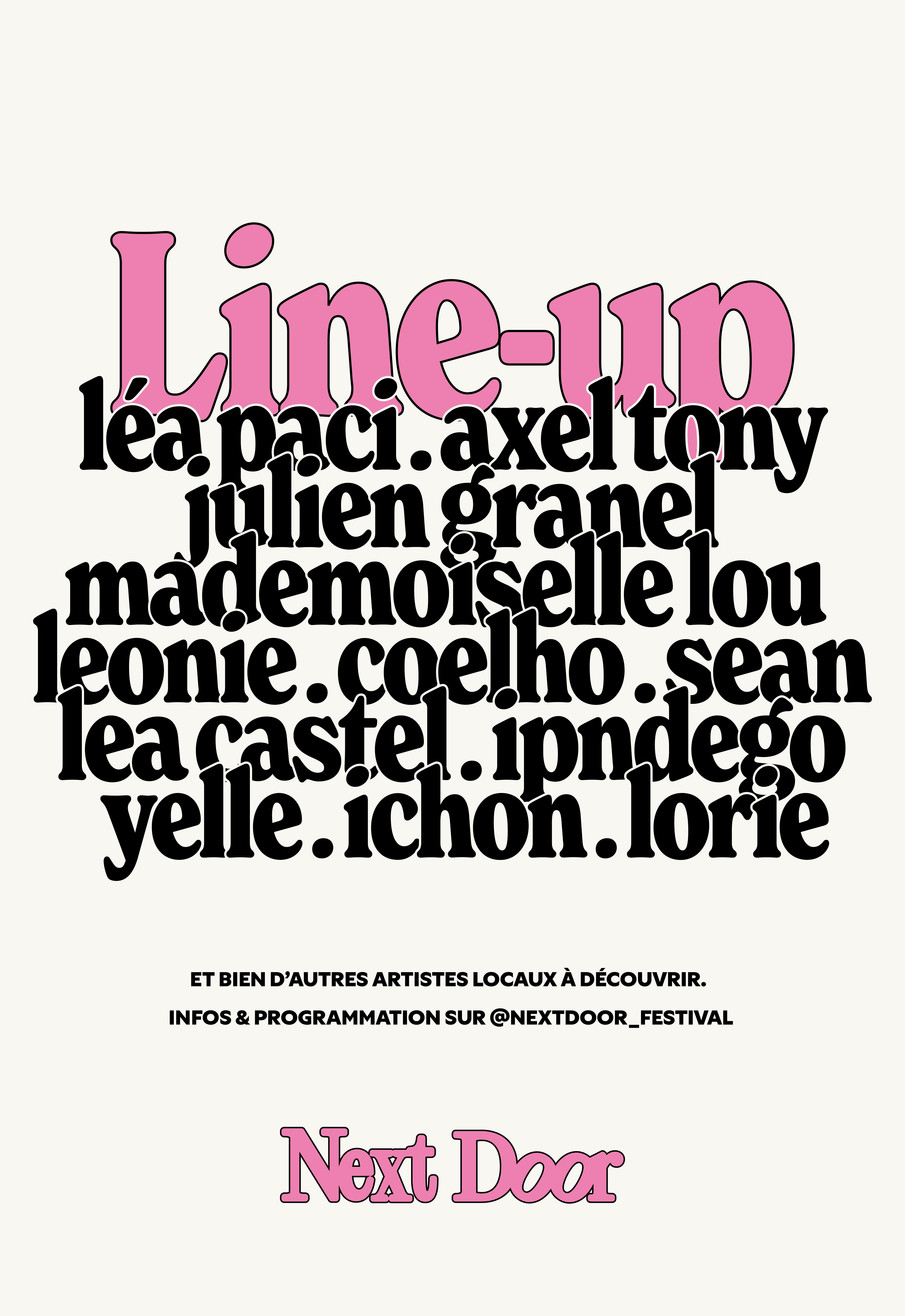Next Door est un concept imaginé pour rendre la musique live plus accessible grâce à un festival itinérant porté par un camion scénique, offrant des concerts exclusifs. J’ai conçu tout son univers créatif (identité visuelle, site web, merchandising, communication…) et structuré l’organisation et la stratégie globale du projet.